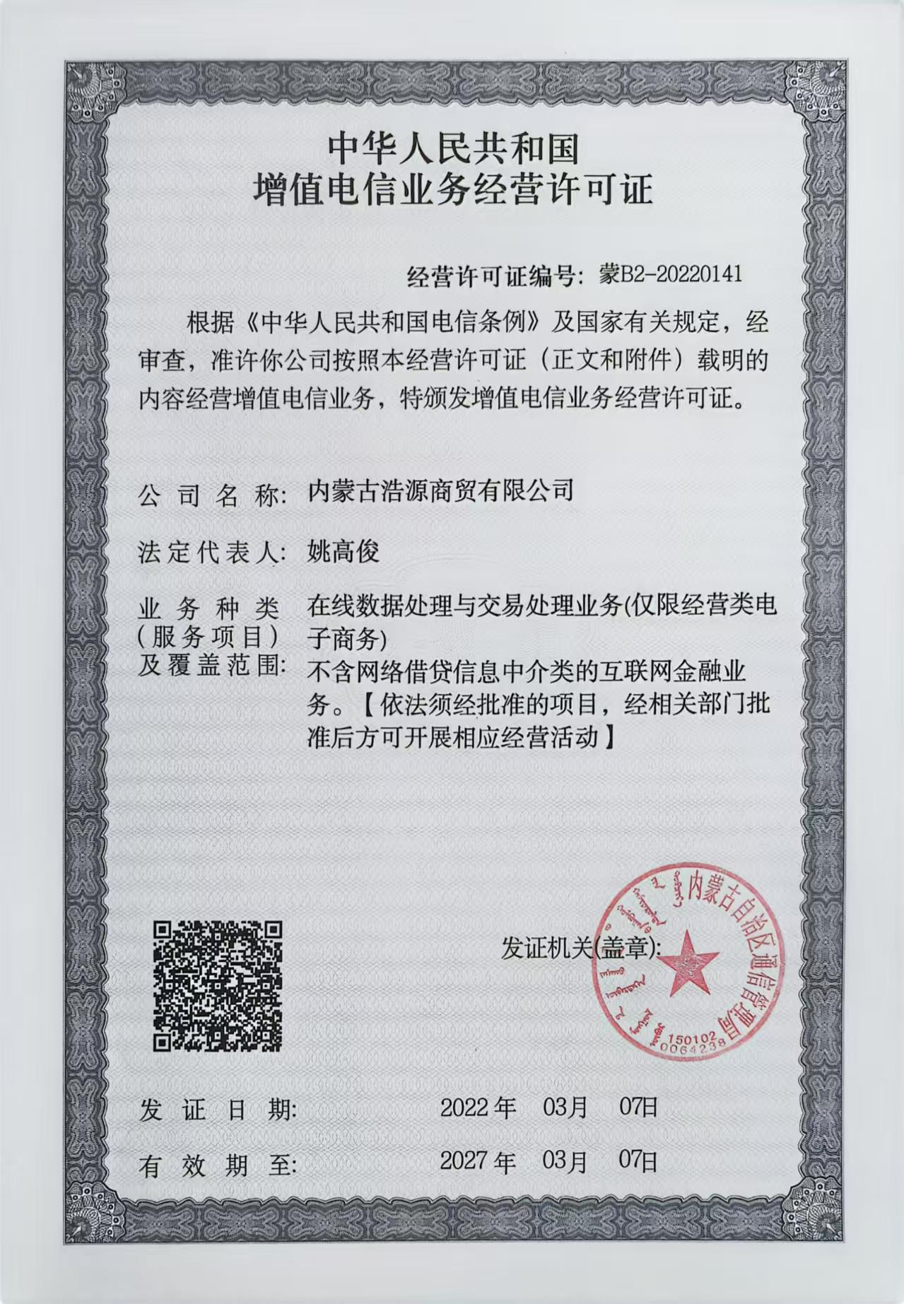 電信增值業(yè)務(wù)經(jīng)營許可證